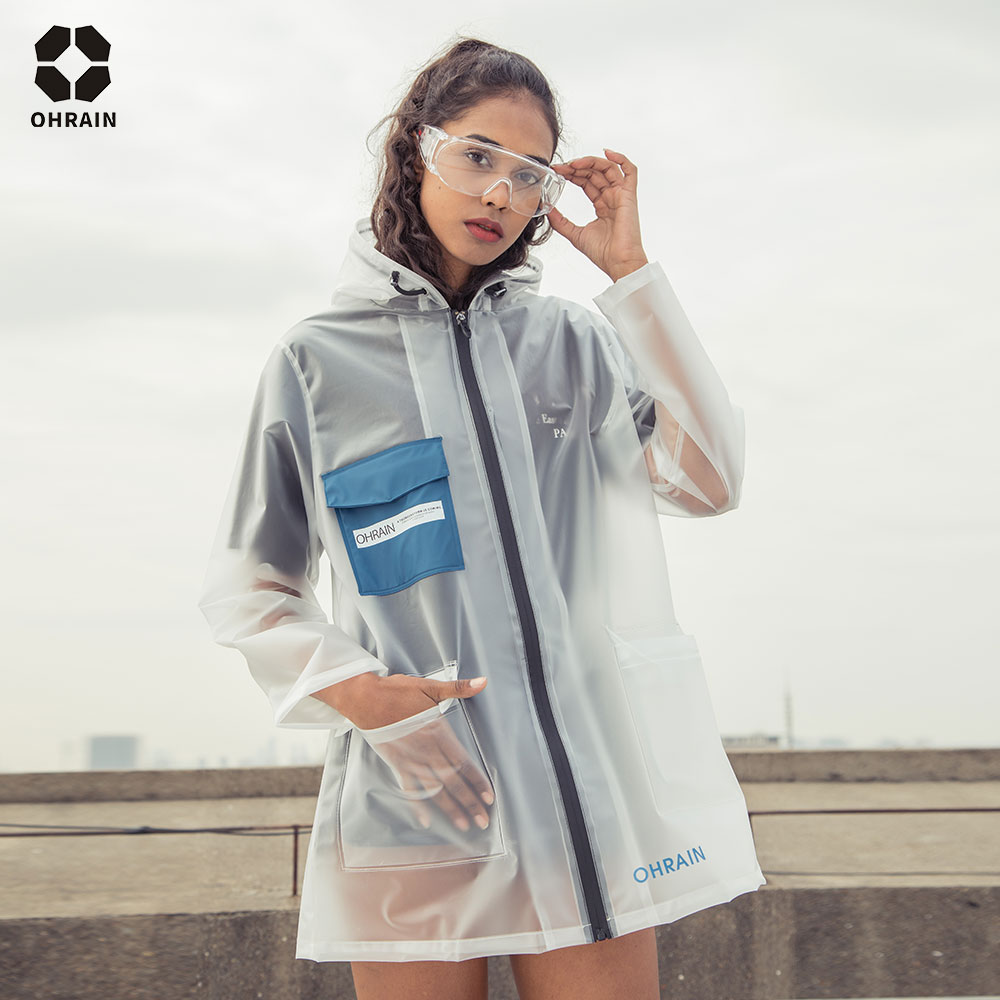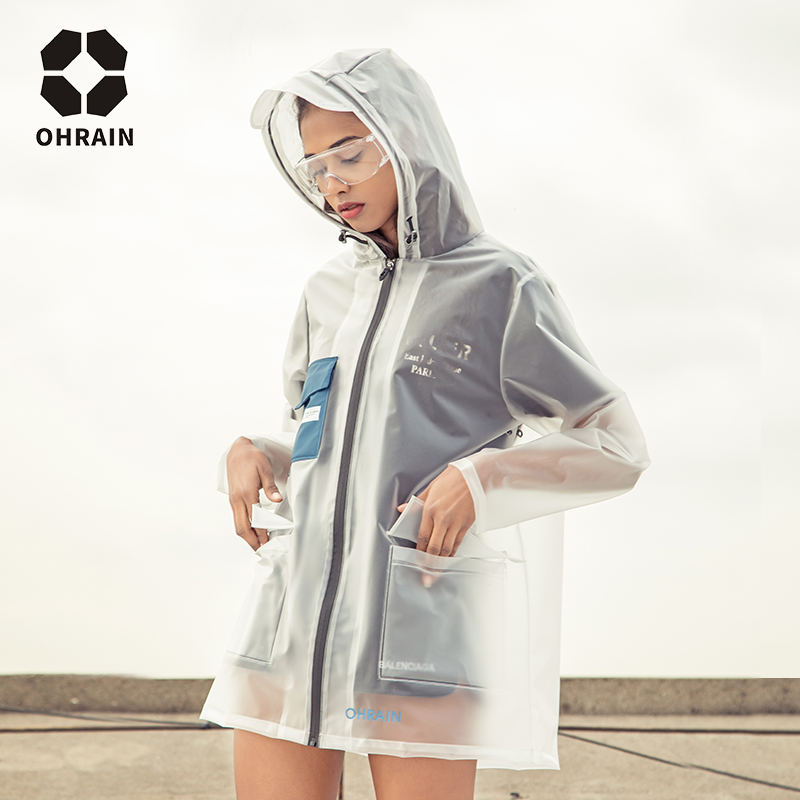 ohrain adult couple fashion transparent net red raincoat outdoor cycling single poncho full body stormproof raincoat