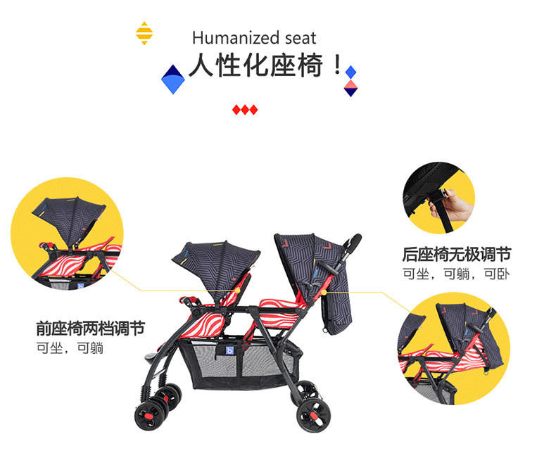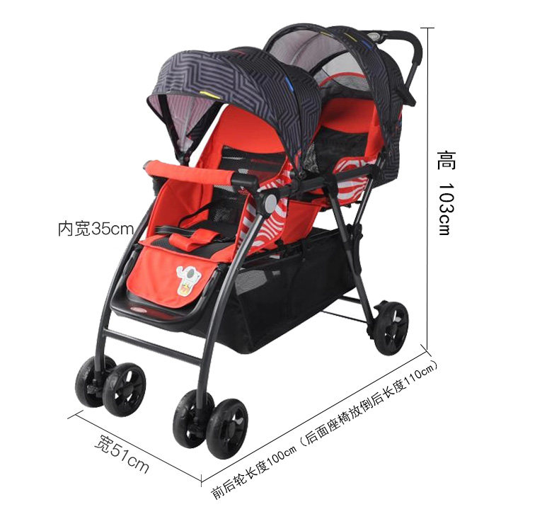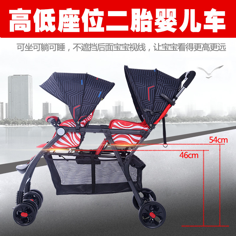 Baby good twin baby stroller light folding double one large one small two can sit can lie down two fetal artifact