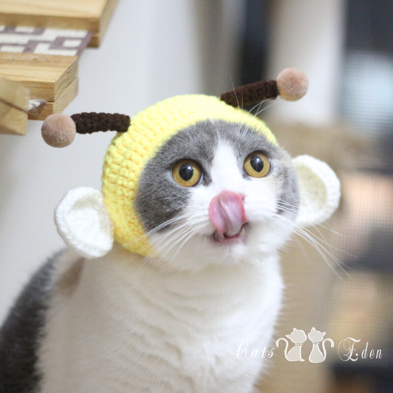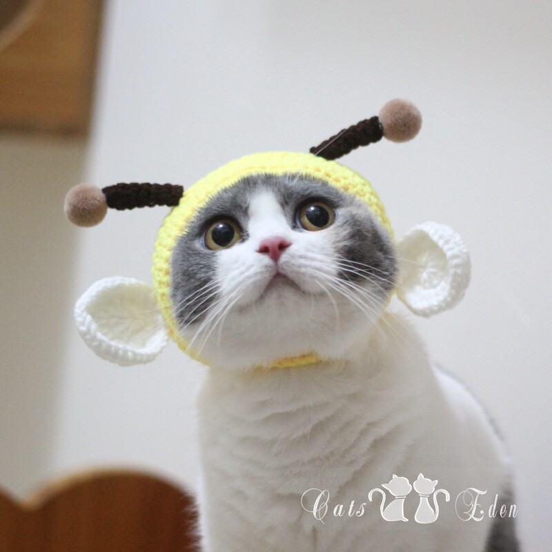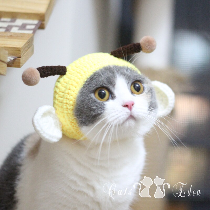 Pet cat bee cross-dress hat headgear hand-woven cute kitten shake sound photo props