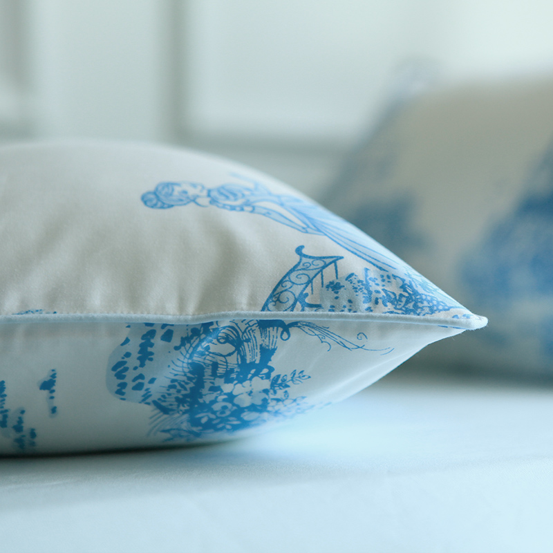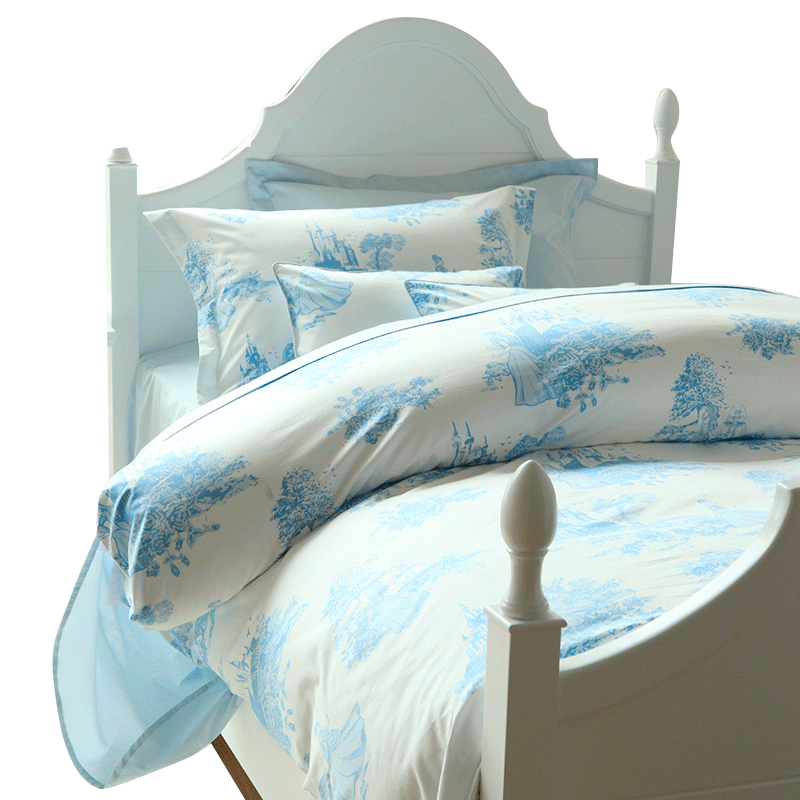 Blue Platinum Pure Cotton Four-piece Set Children's Cotton Satin Bedding Bed Sheet Quilt Cover Set Fairy Tale Castle