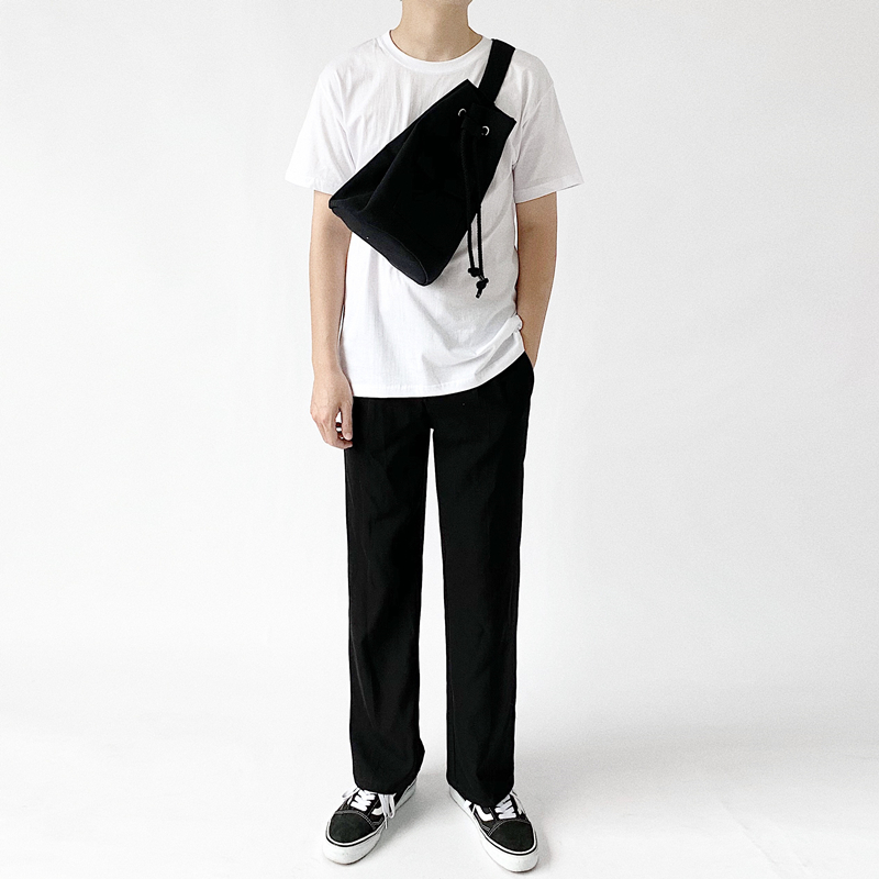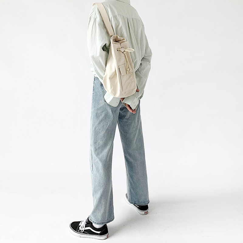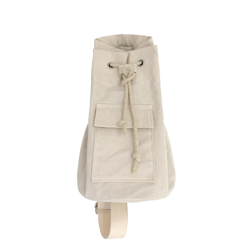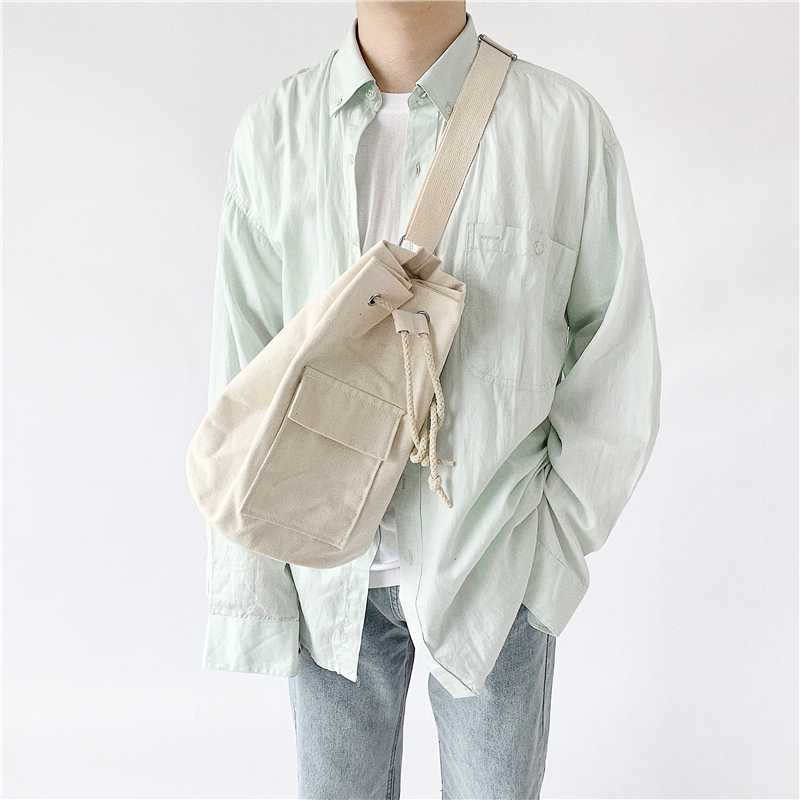 Bai Qi Korea ins retro drawstring design simple and versatile solid color diagonal bag tide canvas one-shoulder cloth bag for men and women