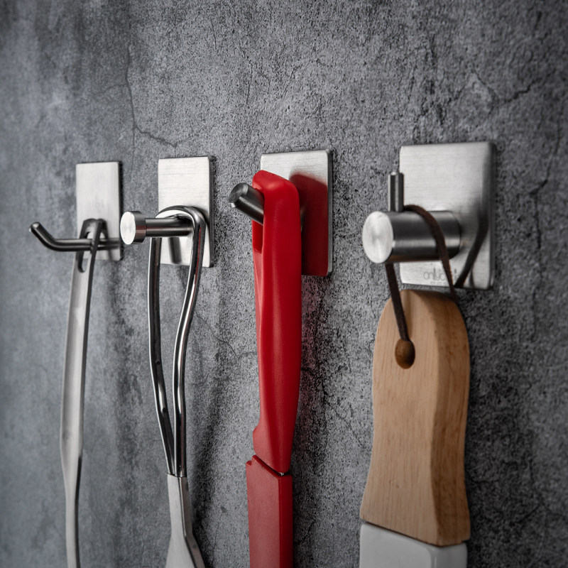 3-pack stainless steel strong hook Household kitchen powder room wall punch-free single load-bearing hook hook