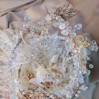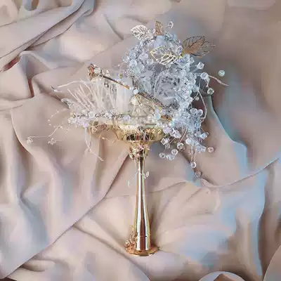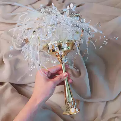 Palace style luxury heavy handmade hand-held flower crystal feather bouquet Bride wedding gift scepter pinky22
