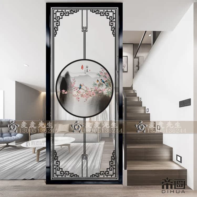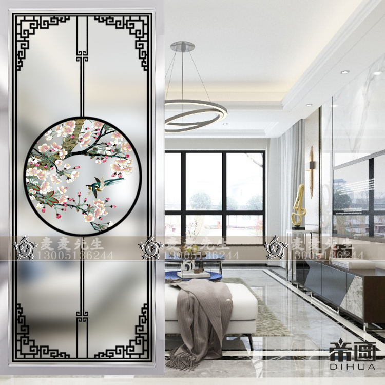 Minimalist modern art glass screen partition steel frosted light transmission living-room into the door shoe cabinet decoration Xuanguan Chinese