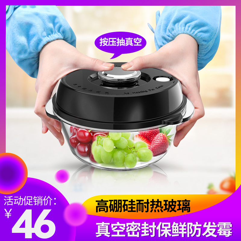 Hand press-type vacuum refreshing box office worker lunch box home student fruit box preservation box heat resistant glass sealing case