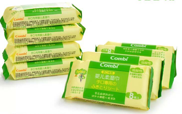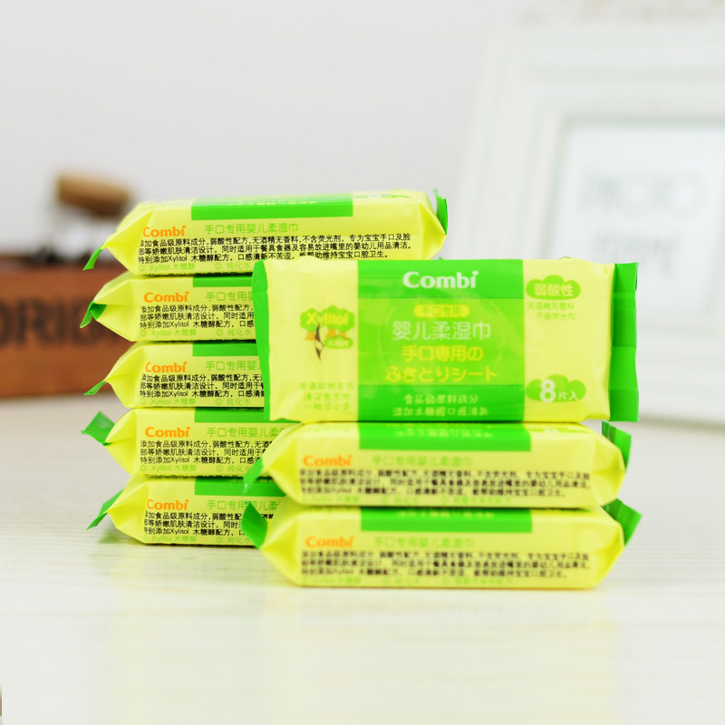 combi Kangbei baby hand and mouth wet wipes baby mouth and hands special newborn wet wipes containing xylitol 8 pieces * 8 packs