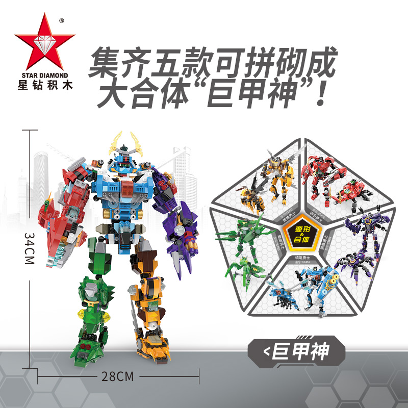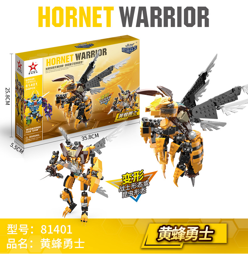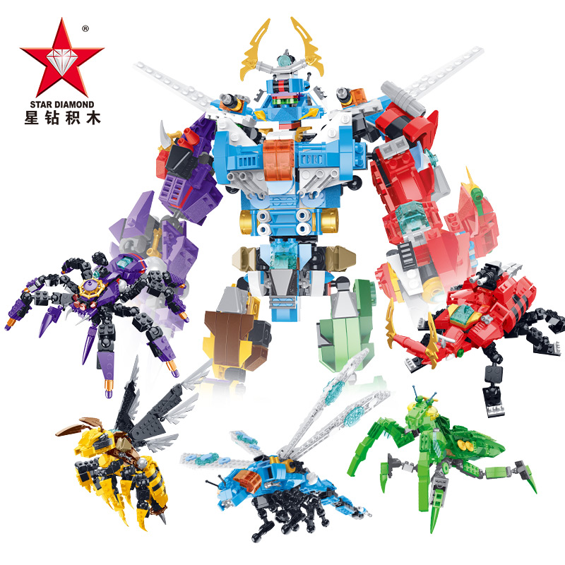 Star Drilling Insect Warriors Series Five-Body Building Blocks Compatible Lego Assembly Deformation Robot Toy Bumblebee