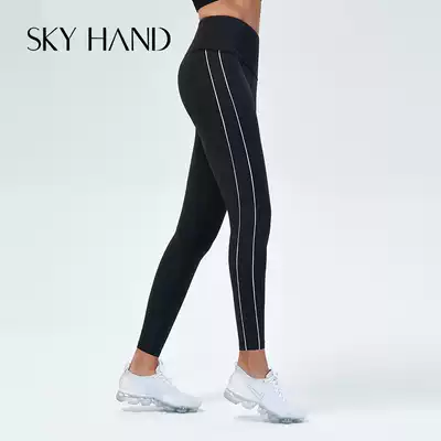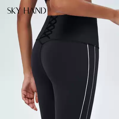SKYHAND yoga pants running fitness pants women compression hip elastic sports leggings drawstring ankle-length pants Spring