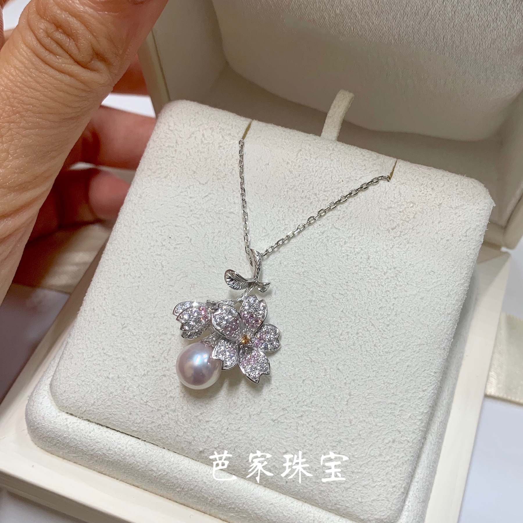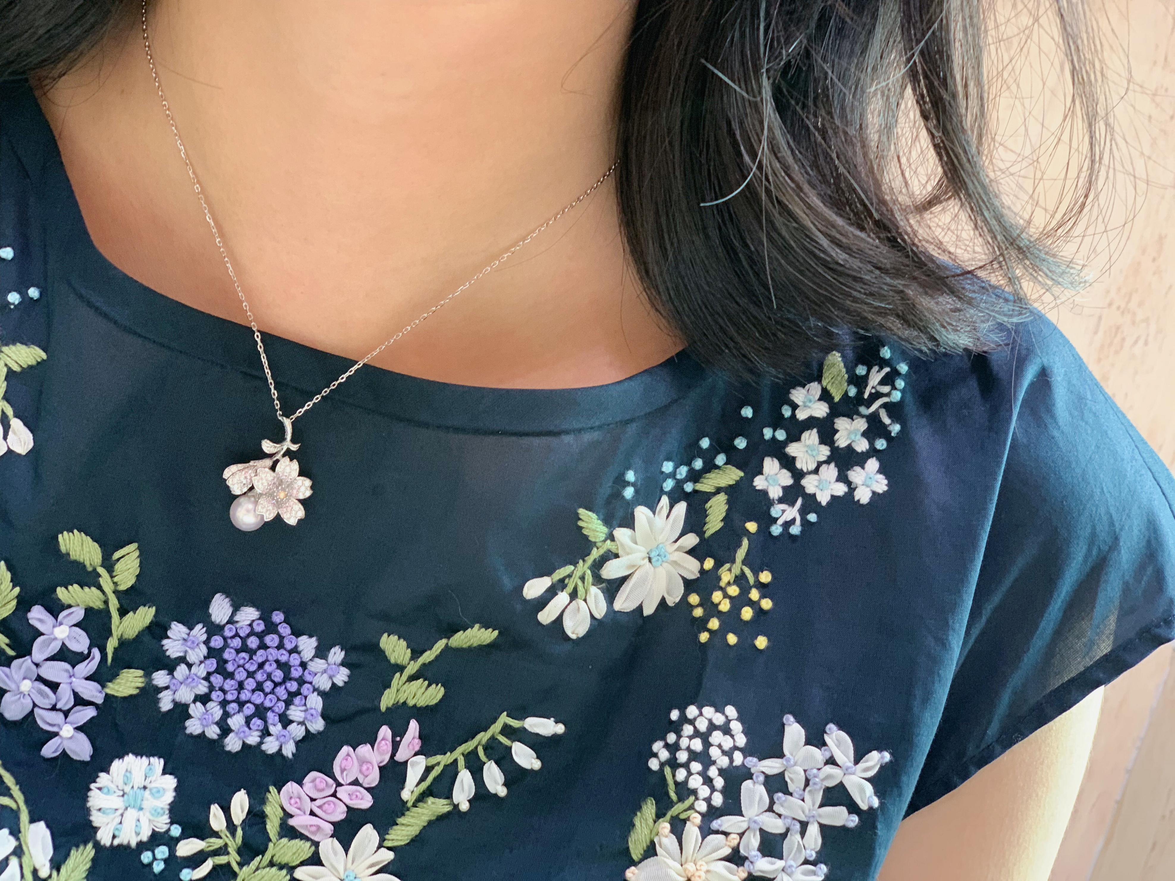 Bajia jewelry a cherry blossom Japanese akoya sea pearl 925 sterling silver pendant necklace