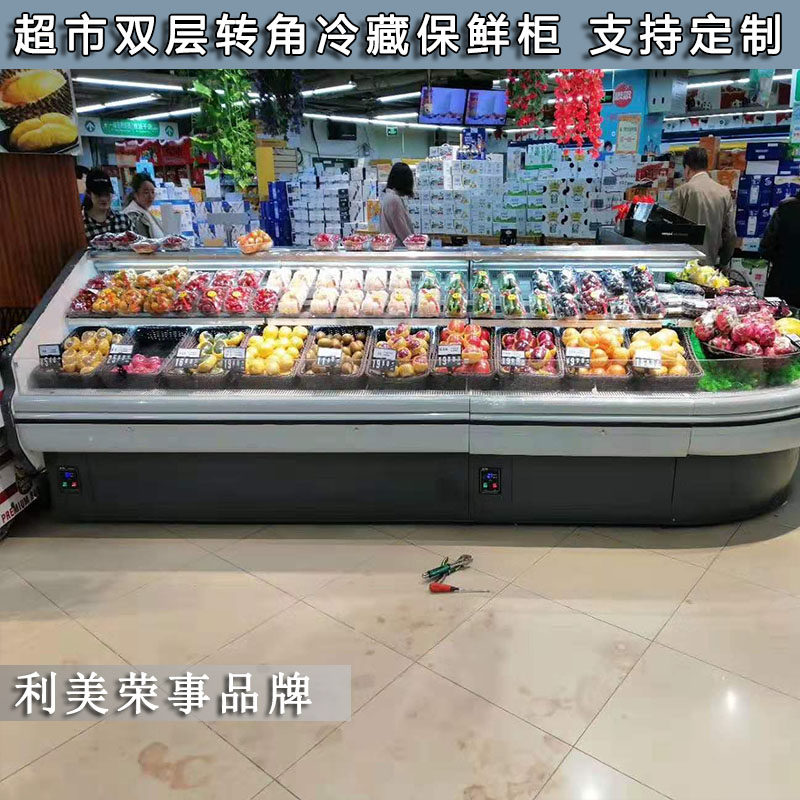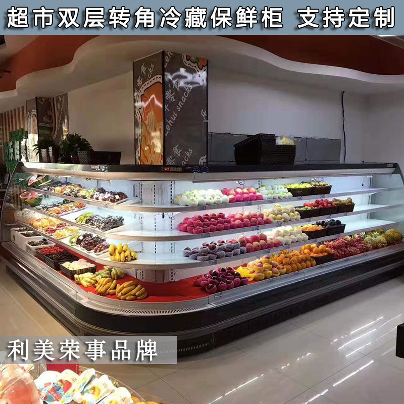 Supermarket Vegetable Fruit Refreshing Cabinet Horizontal Double Layer Refrigerated Display Ice Cabinet Air-cooled Circular Arc Corner Wind Curtain Cabinet Commercial
