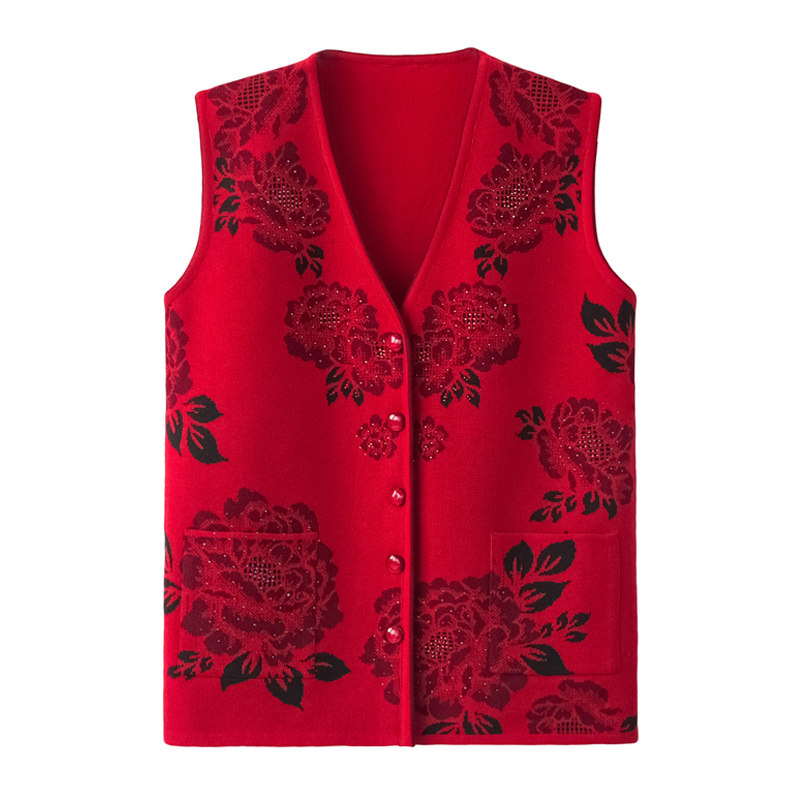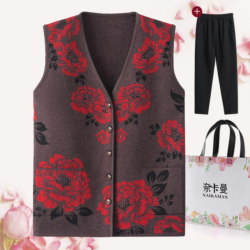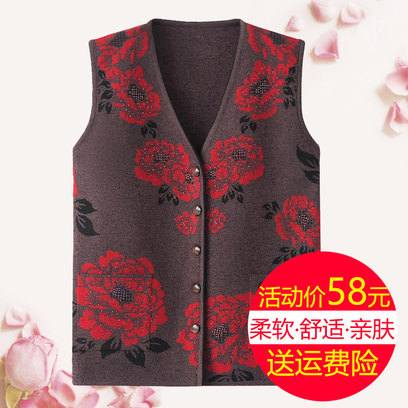 Elderly waistcoat for women's spring and autumn clothes Grandmother knit cardiovert elderly waistcoat Shoulder Winter Clothing Mom Clothing Sweater Vest