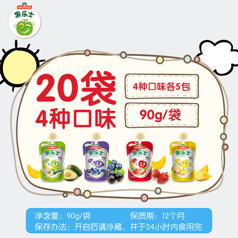 Fruit lees yoghurt fruit puree 90g * 20 bags at normal temperature nutraceutical fruit puree snack suction suction bag