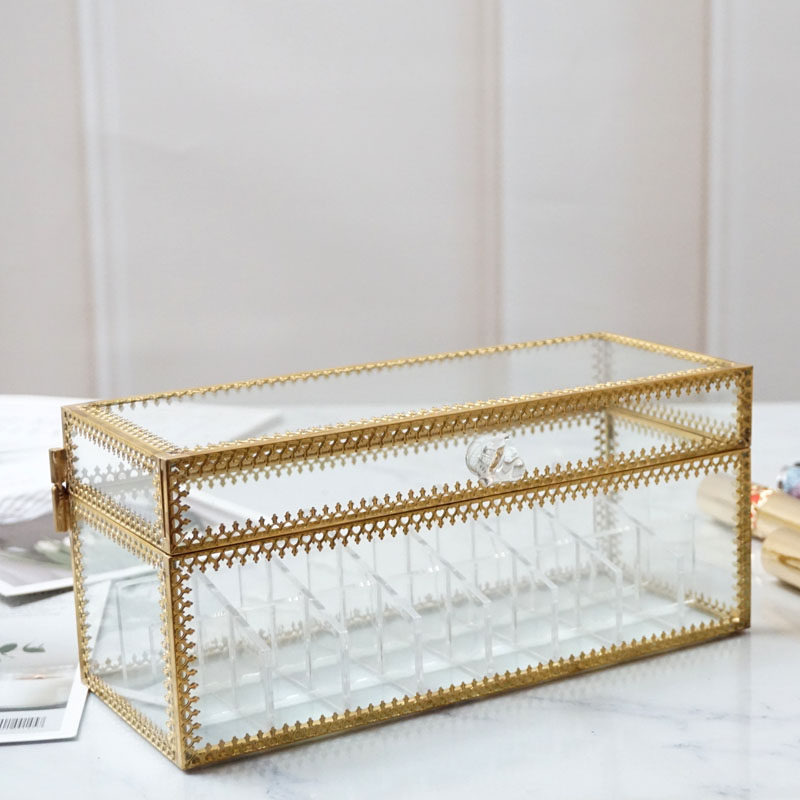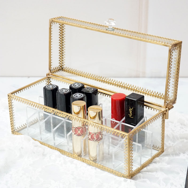 Net red rectangular lipstick glass storage box transparent cosmetics makeup lip glaze lipstick display desktop finishing box
