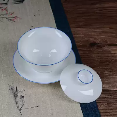 White porcelain cover Bowl Tea Cup hand-painted blue line three-style bowl large tea bowl not hot hand thin tire light light transmission kung fu tea set