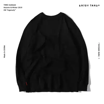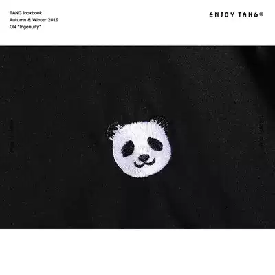 Joker casual solid color jacket men's embroidery red panda LOGO round neck long sleeve T-shirt Tide brand loose Tee