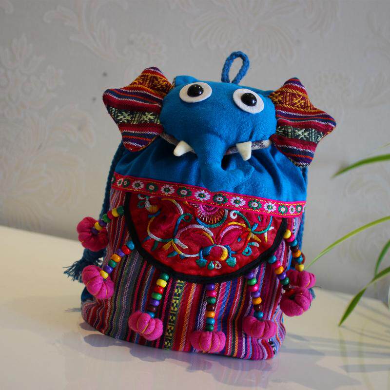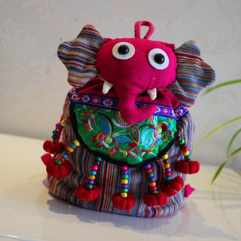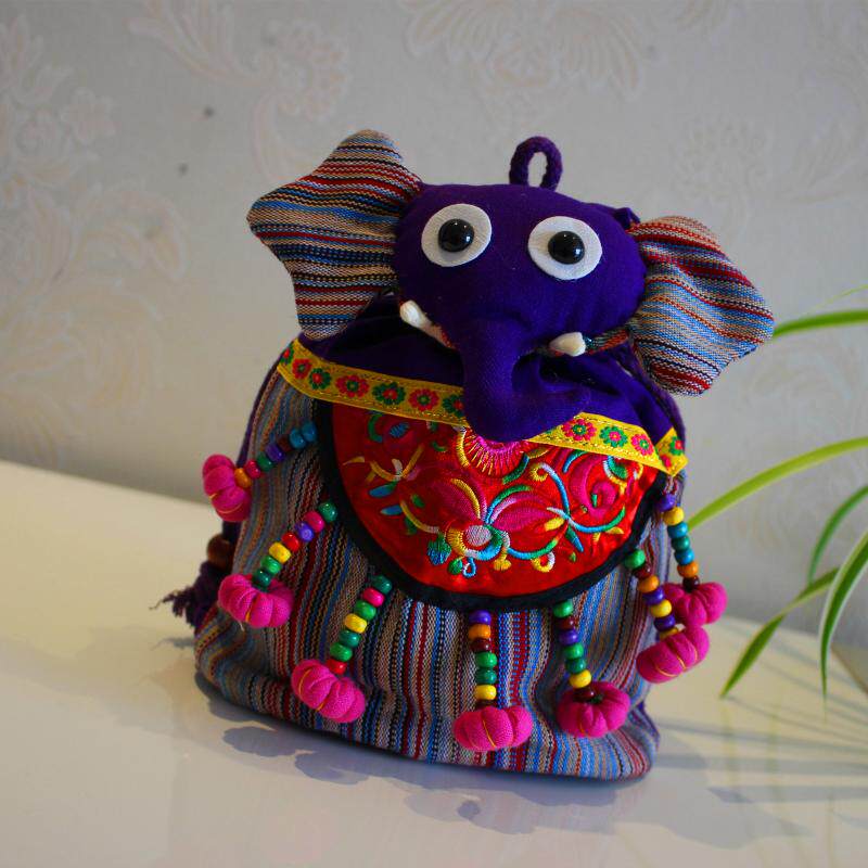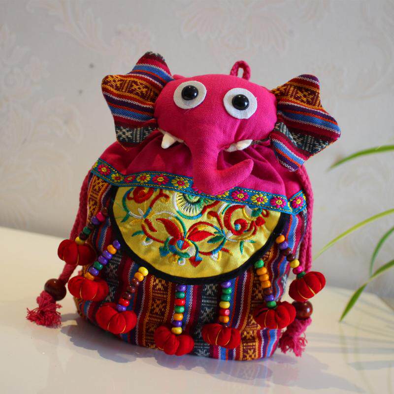Yunnan ethnic wind handmade cloth bag double shoulder cartoon elephant barrel bag children containing zero wallet child small gift