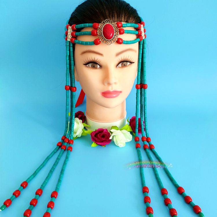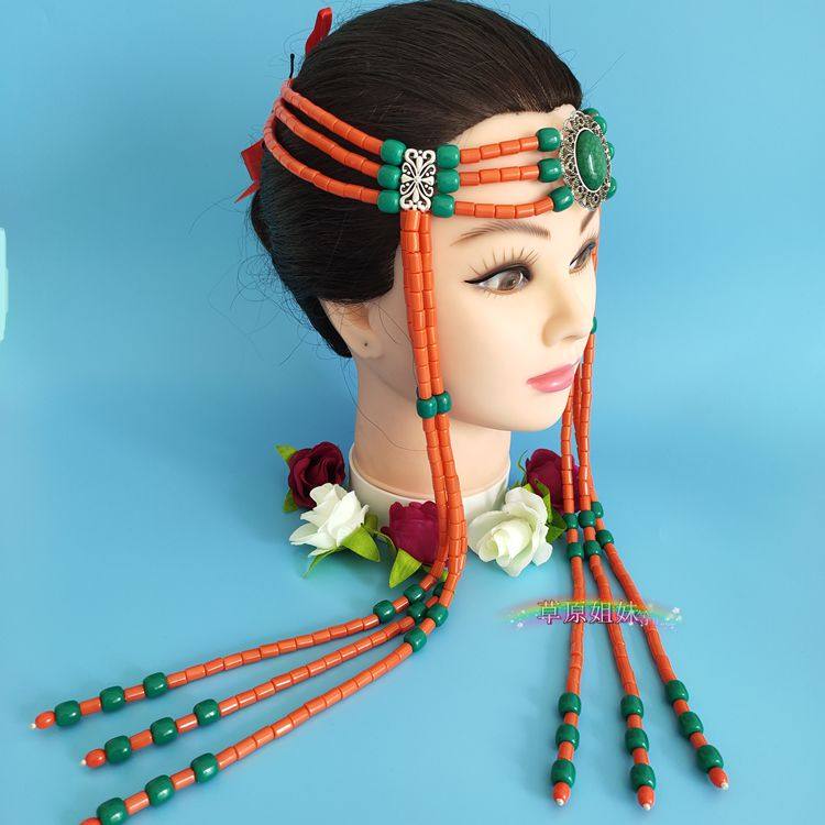 Mongolian female style new head decorated with long version of streaming Su hair accessories dance performance paired with Mongolian robe ornament bride makeup