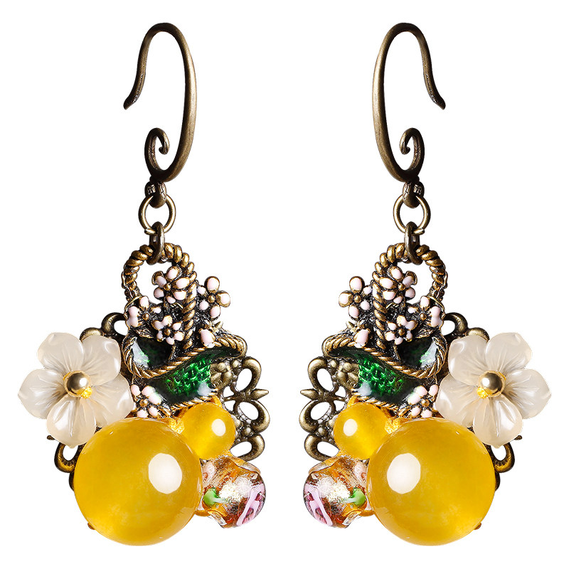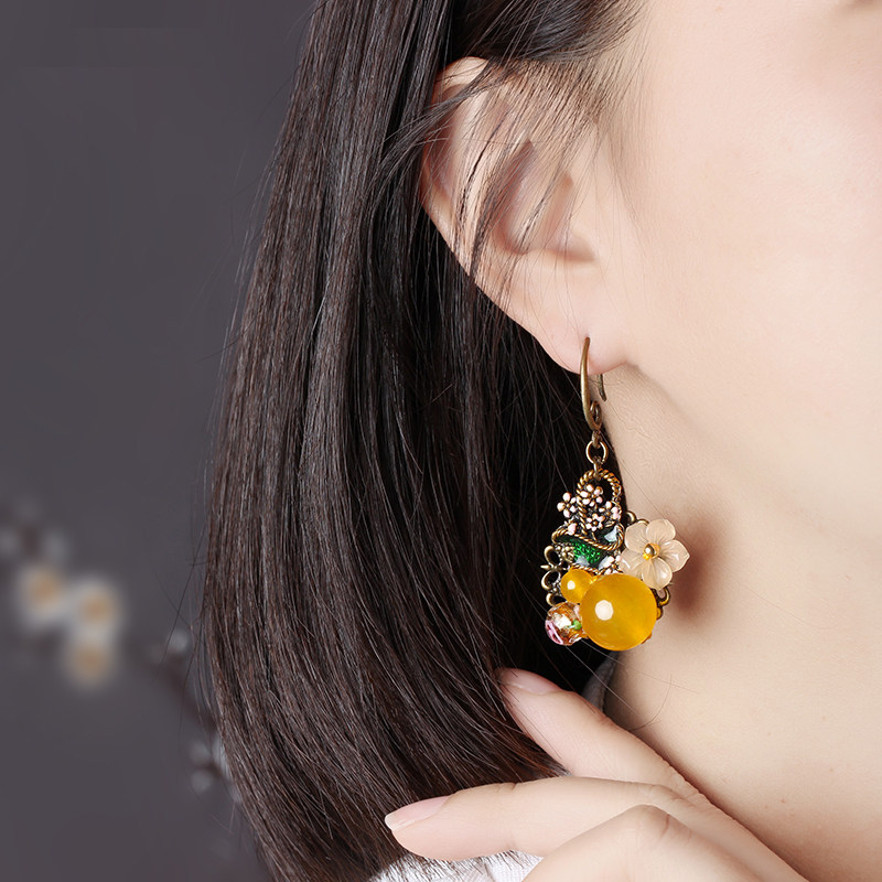 Retro Earrings Ancient Wind Ear Pendant Hanfu Qipao Ancient Dress Yellow Super Fairy Short And Classical Ear Clip National Wind Ear Accessories Woman