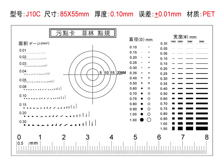 Number of stains Card film point gauge Area gauge Inspection card comparison card line gauge Standard test card scratch comparison point line