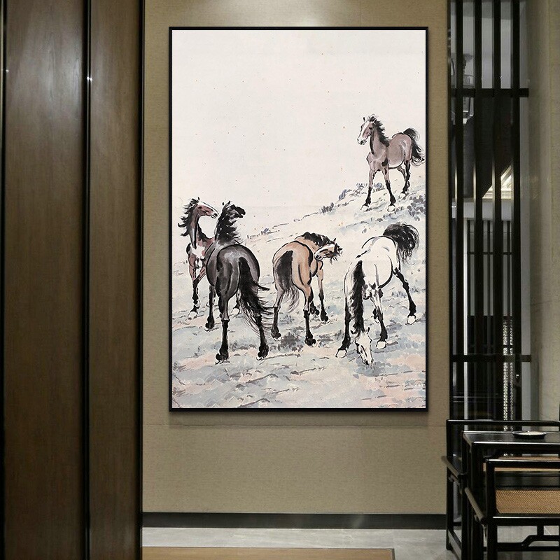 Xu Beihong famous painting diy digital oil painting hand-painted coloring acrylic oil painting Chinese style ink horse decorative painting