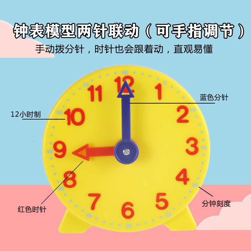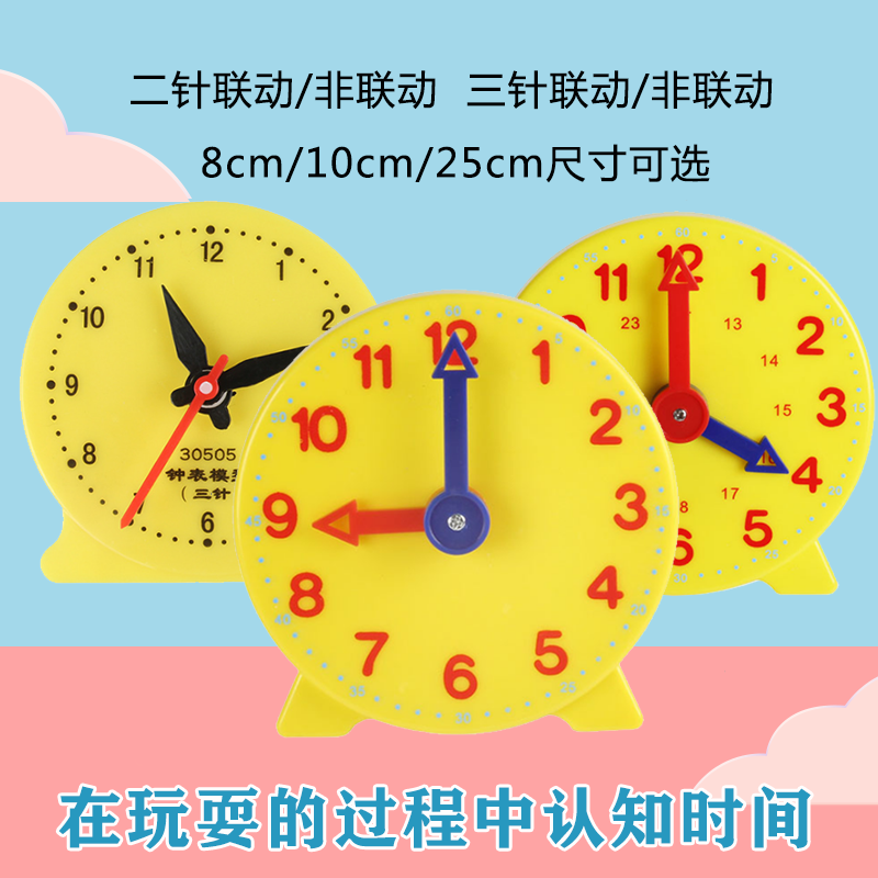 Clock model 10cm clock face teaching aids Two-pin linkage clock model large teaching aids Children's learning time