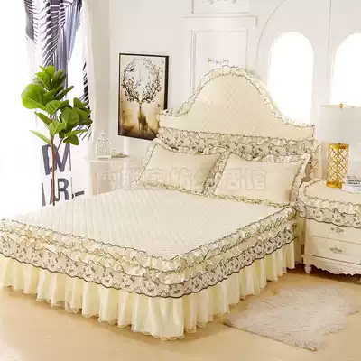 gong zhu kuan quilted padded Crystal velvet bed skirt 1 5 m 1 8 meters European lace lace bedspread professional custom