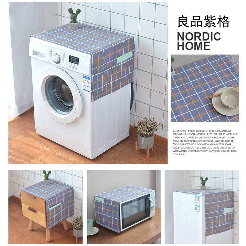 Refrigerator cover cloth microwave oven dust cover Nordic ins lattice drum washing machine bedside table universal cover cotton linen