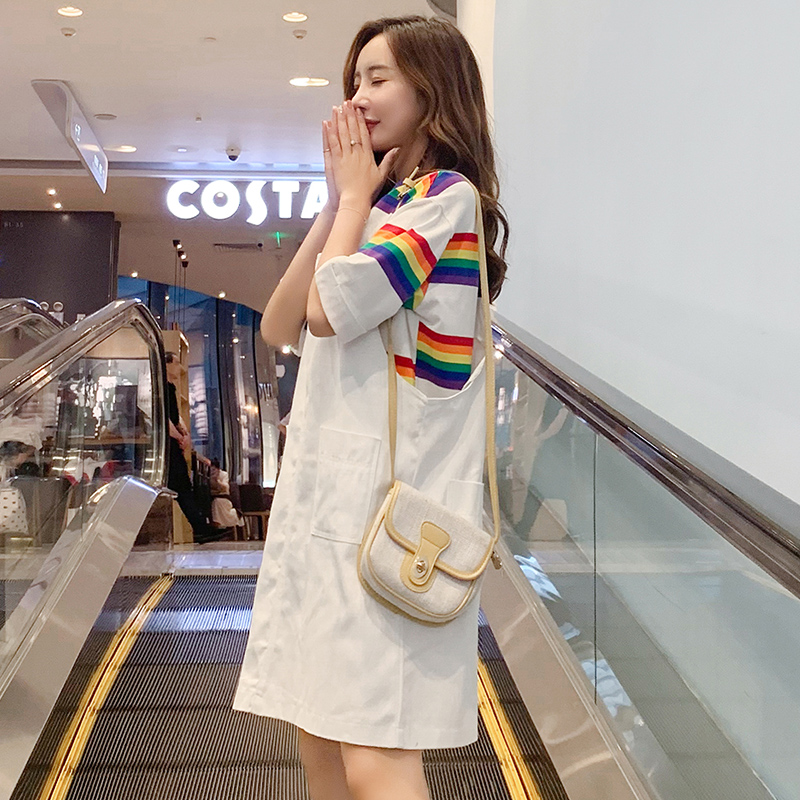 European goods 2022 new women's fashion trendy fat mm covering the belly and showing thin two-piece suit Western style holding baby bag dress female summer