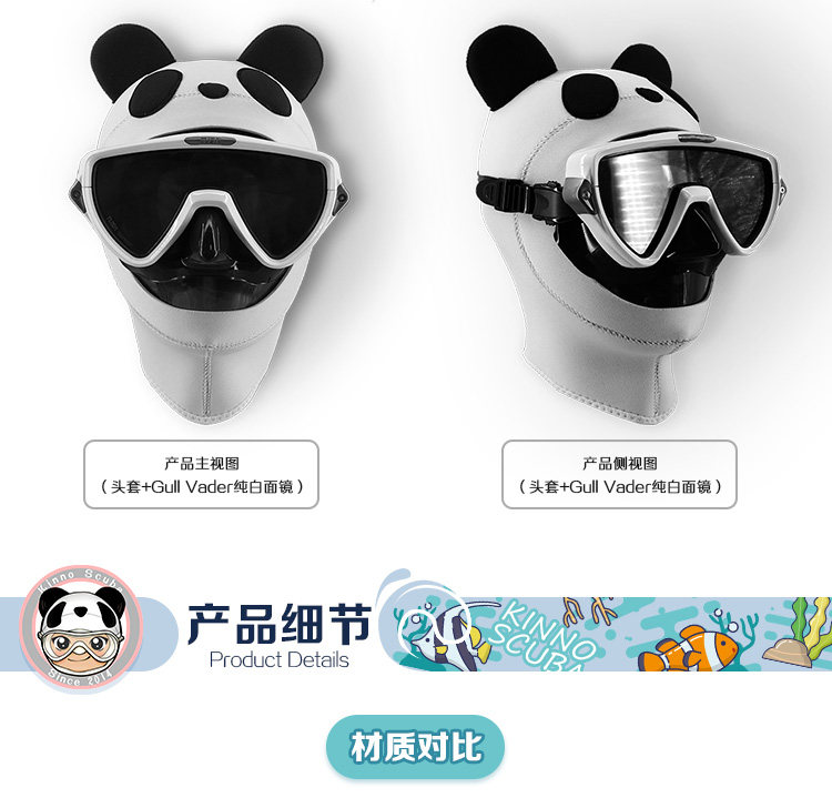 KINNO SCUBA cute cartoon diving headgear little panda adult diving hat children warm sun protection