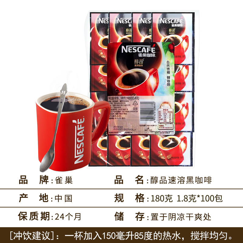 Nestle Black coffee Mellow sugar-free instant extra strong bitter reduction coffee powder 1 8g*100 bags