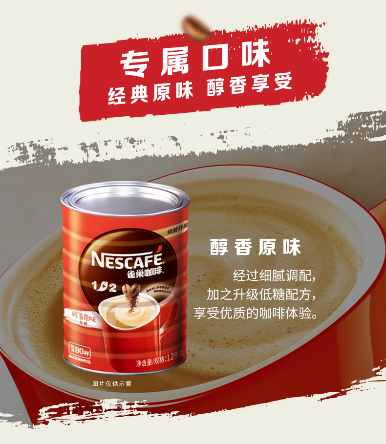 Nestlé Nestle Coffee 1 2 Original Taste 1 2kg Canned Three-in-one Instant Coffee Powder 1200g Barrel Loaded Coffee