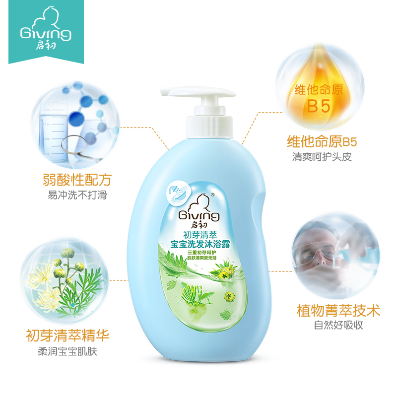 Qichu First Bud Extract Baby Shampoo Shower Gel 2-in-1 620ml Newborn children tear-free gentle cleansing