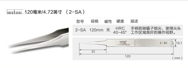 The original VETUS stainless steel high precision tweezers 2 - SA anti - magnetic acid and hardened tweezers high elasticity tweezers