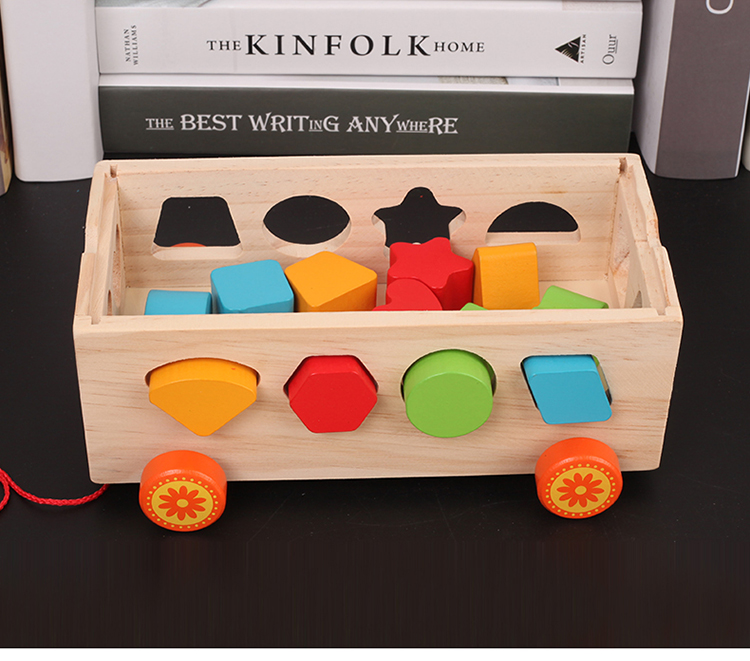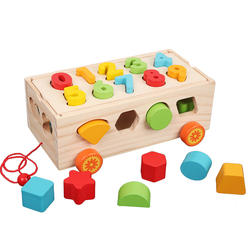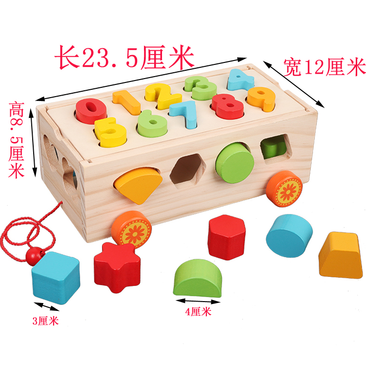 Children's geometric thirteen hole shape pairing intelligence box building block trailer 1-2-3 year old baby early education cognitive toy