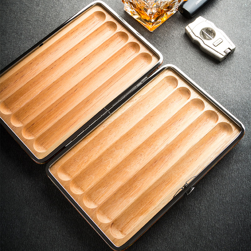 Rubinsky Cigar Genuine Leather Upscale Cedar Wood Inner Lining 4 Clothes Moisturizing Box Portable Cuba Travel Smoking Furniture