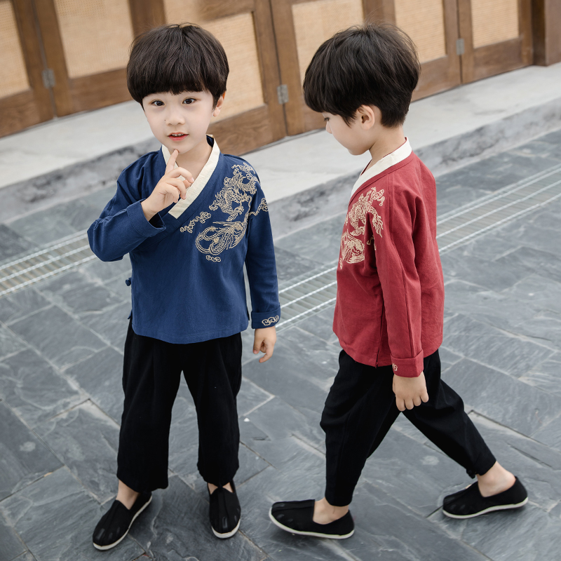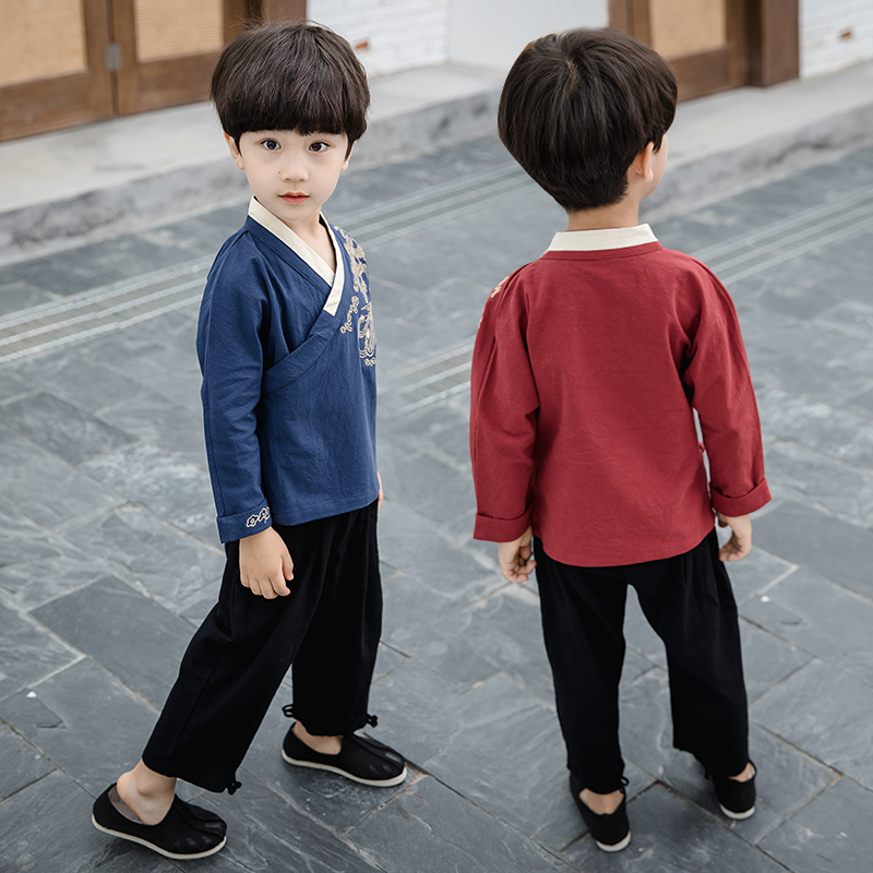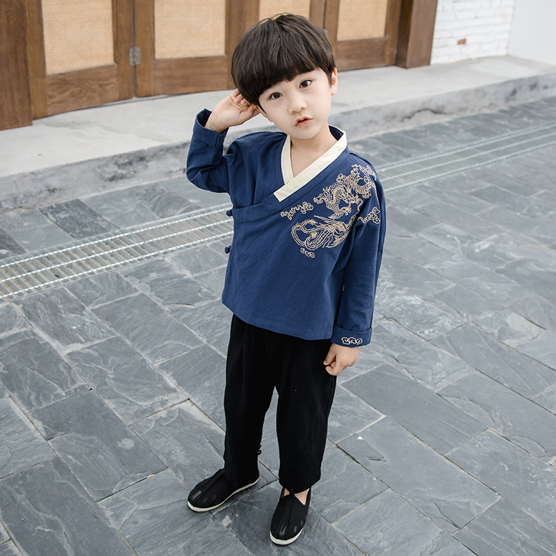 Boys ' long-sleeved retro Hanfu Children's autumn ethnic style Hanfu Year-old male baby kindergarten garden dress Tang Suit