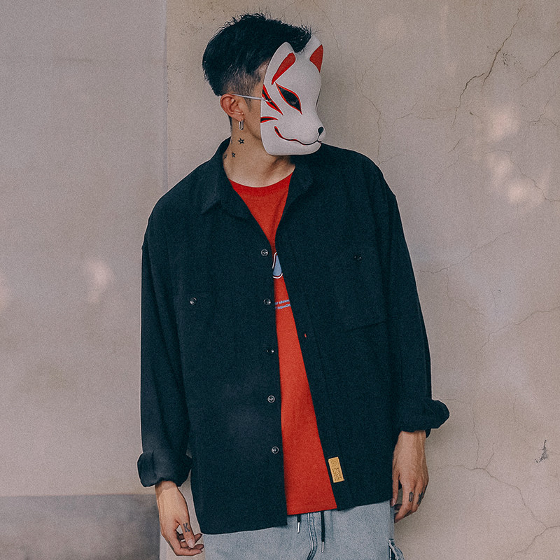 The whole village solid color tooling shirt men's trend Korean casual 2020 new shirt jacket spring handsome teenager