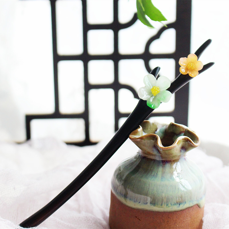 The wind is more snowy and more Chinese ancient wind classical sandalwood hair Hairpin Hairpin Cherry Blossom Hairpin Lan Cardiopic Disc Hair gift
