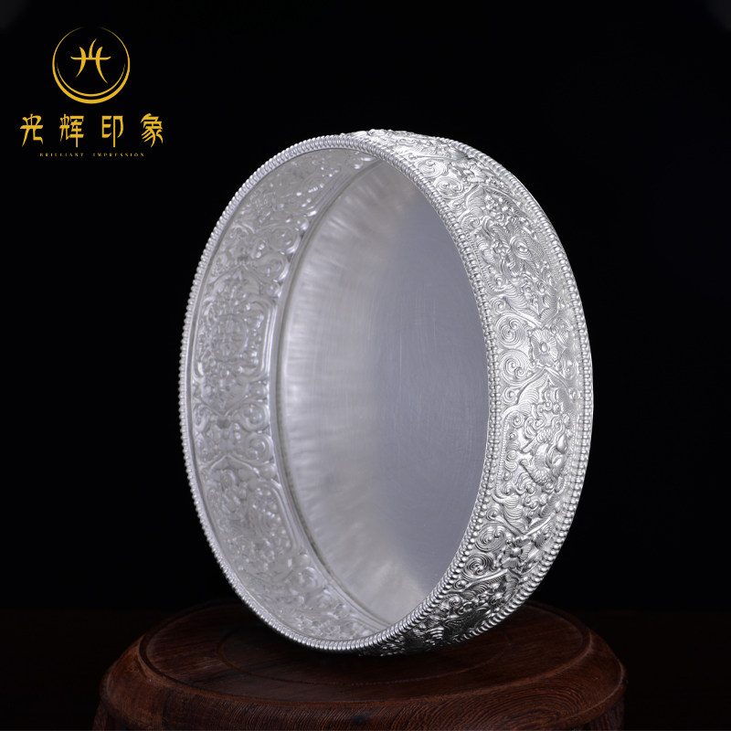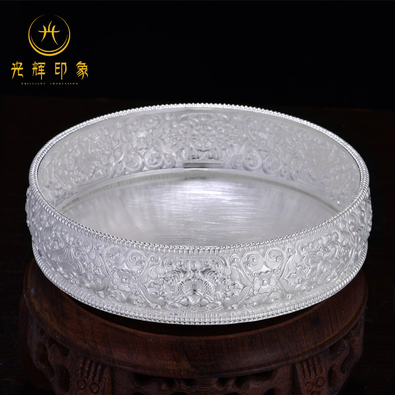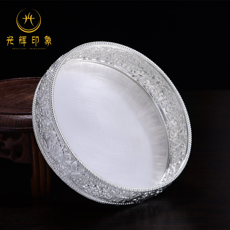 Glorious impression Tibetan S99 sterling silver Manza plate handmade eight auspicious Manzaman tea Luo 14cm repair plate