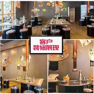 BBQ table stool square table Korean restaurant Japanese stainless steel table and chair combination round commercial hot pot