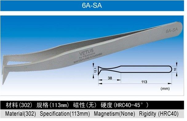 VETUS tweezers fine high precision anti - magnetic acid anti - acid stainless steel eagle tweezers 6A - SA bent - mouth tweezers
