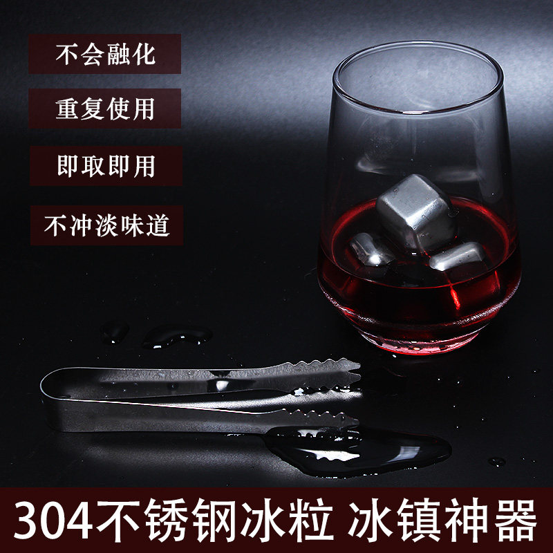 304 metal stainless steel ice cubes food grade ice grain foreign wine whiskey ice tart stone frozen ice with ice clip set