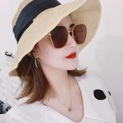South Korea big frame square orange sunglasses female face thin sunglasses men and women personality Joker ins Wind Net Red