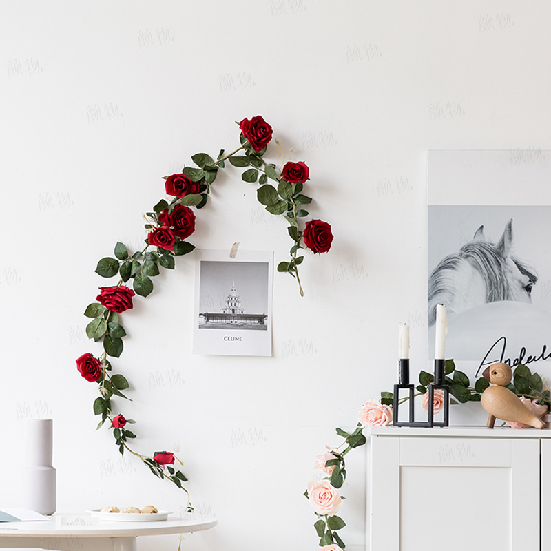 Nordic simulation rose vine fake flowers dressed up home winding air conditioning pipeline decorated vine to block the plant