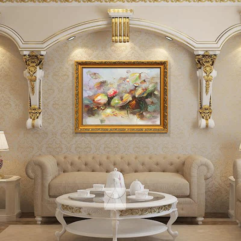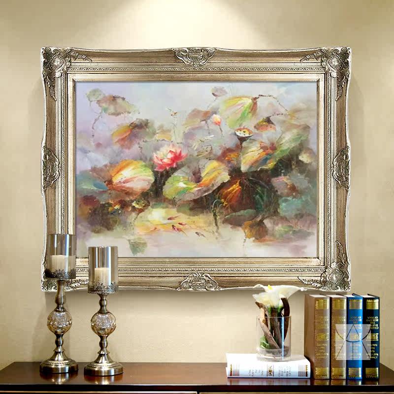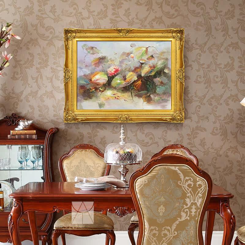 Art Master's New Chinese Xuanguan Oil Painting Pure Hand Painted Living Room Dining Room Dining Hall Impression Hung Painting Fresco Decoration Painting Brocade Embroidered Lotus Flowers