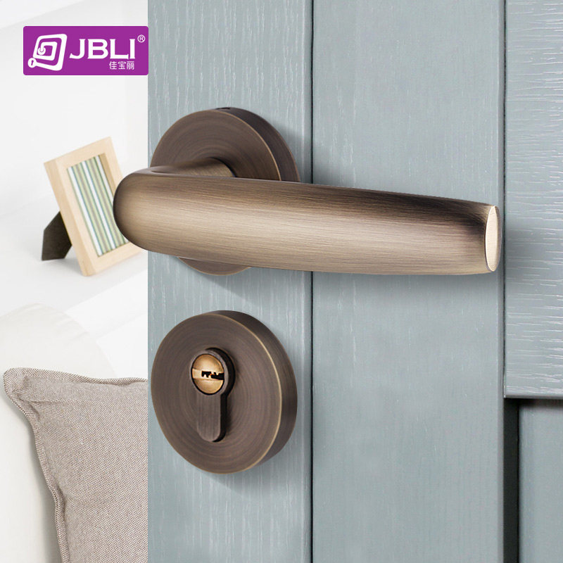 Jiabao Li Door Lock Indoor Room Door Handle Home Bedroom House Door Two-piece Lock Silent Green Bronze Baroque