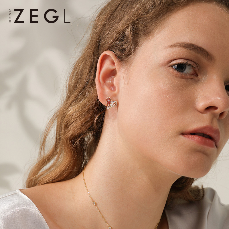 ZENGLIU small love earrings female heart-shaped peach heart stud earrings niche Internet celebrity cute girl small fresh earrings