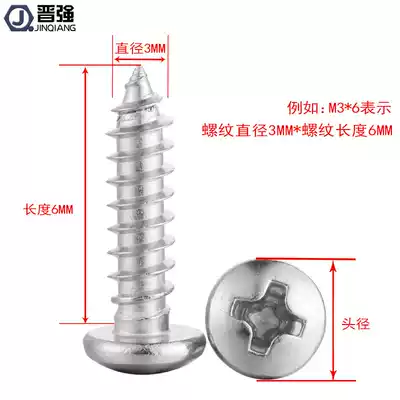 304 stainless steel cross round head self-tapping screw Phillips head wood tooth screw semicircular head screw M3M4M5