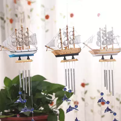 Mediterranean style decoration smooth sailing solid wood sailing dolphin wind chime hanging decoration creative balcony birthday gift