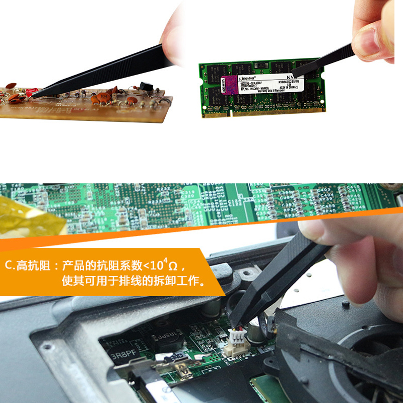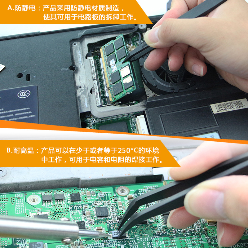 Jackie's anti-magnetic, anti-static tweezers acid-resistant, high temperature tweezers suit flat mouth bending tip